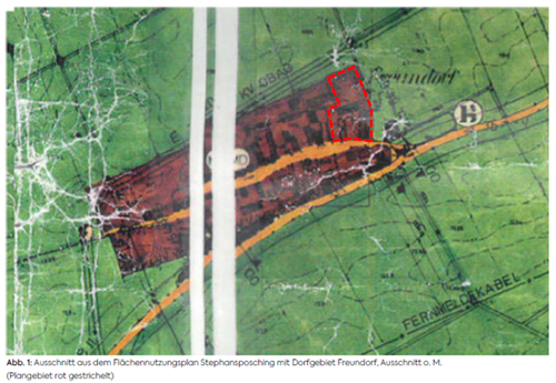 Das Plangebiet liegt am nordöstlichen Siedlungsrand von Freundorf im südöstlichen Gemeindegebiet von Stephansposching. Der rechtskräftige Flächennutzungsplan mit integriertem Landschaftsplan der Gemeinde Stephansposching stellt das Plangebiet mit der Flurnummer 1080 als Dorfgebiet (Innenbereich) dar. Die bestehende Fernmeldeleitung verläuft südlich von Freundorf; die oberirdische 20kV-Freileitung verläuft nördlich des Plangebietes an den Bebauungsgrenzen der Siedlungsstruktur von Freundorf.